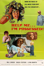 Absolutely zero possession occurs in Help Me… I’m Possessed!, but I hardly care because then we would be denied that wonderful title. Although directed by Charles Nizet (The Ravager), this bargain-basement potboiler is written by the Blackwoods themselves, Peters and Greer, both way over their heads. At least their script goes out of its way to treat the mentally ill with respect rather than stereotype them … okay, yeah, I’m totally kidding there, as you can see.