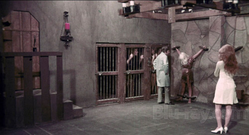 Basements were built for shelter and storing wine. But I suppose they’re good for caging humans, too, which is how Dr. Blackwood (Bill Greer) makes use of the space in the desert castle serving as his sanitarium. It’s where, amid other misdeeds, his ever-blinking hunchbacked assistant (Pierre Agostino, The Hollywood Strangler Meets the Skid Row Slasher) whips an underwear-clad cutie until her back resembles a bag of spilled Twizzlers.